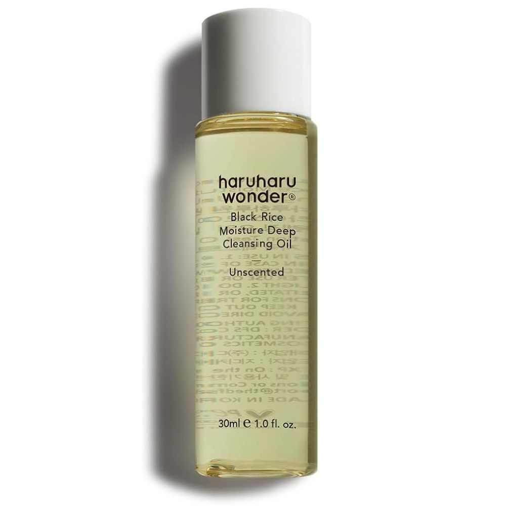 Haruharu Wonder Black Rice Moisture Deep Cleansing Oil (30ml) is a mini-size oil cleanser that melts away makeup, sunscreen, and daily buildup while maintaining skin hydration. Packed with antioxidant-rich Black Rice and a blend of natural plant oils, it purifies gently without residue. The compact size makes it perfect for travel or first-time users.
