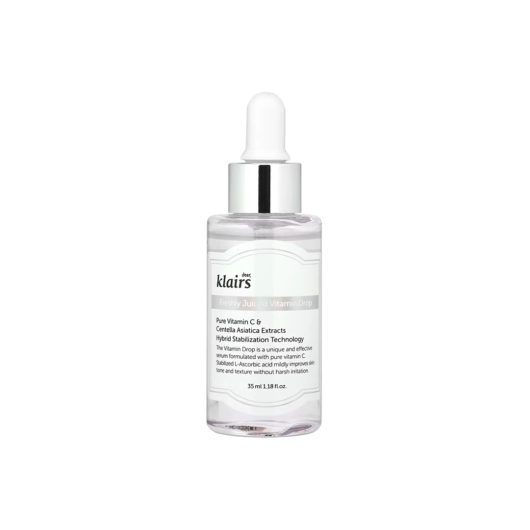 KLAIRS Freshly Juiced Vitamin Drop is a Korean vitamin C serum containing 5% pure L-ascorbic acid (vitamin C) in a gentle formula.