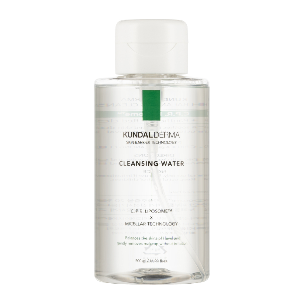 Kundal C.P.R. Cica pH Balancing Cleansing Water 500ml is a gentle micellar cleansing solution designed to remove makeup, sunscreen, and impurities while protecting the skin’s natural moisture barrier.