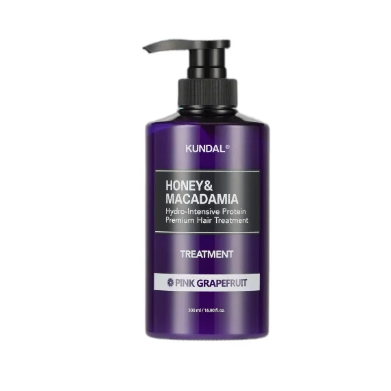 Kundal Pink Grapefruit Honey & Macadamia Treatment is a hair mask/treatment. It’s made with honey, macadamia oil, lots of plant extracts and proteins. It has a fresh citrus scent with pink grapefruit and some floral & fruity notes. It comes in a 500 ml jar. It’s for hair that is damaged, dry, or needing repair.