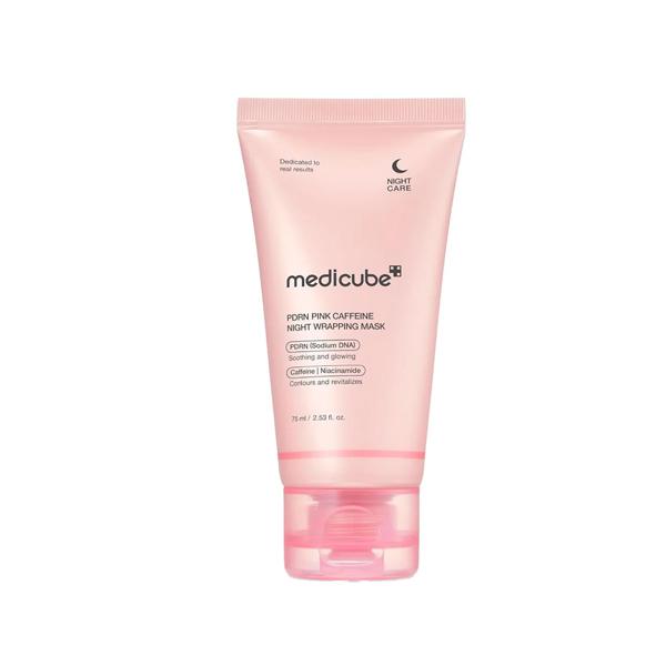 MEDICUBE PDRN Pink Caffeine Night Wrapping Mask 75ml is a revitalizing Korean overnight mask designed to refresh and restore tired skin while you sleep. Infused with PDRN for skin regeneration and caffeine to energize and brighten, this mask helps improve elasticity, smoothness, and hydration. Its creamy texture forms a gentle wrapping layer that locks in nutrients and moisture, leaving the skin plump, radiant, and revitalized by morning. Perfect for tired, dull, or stressed skin needing intensive night care.