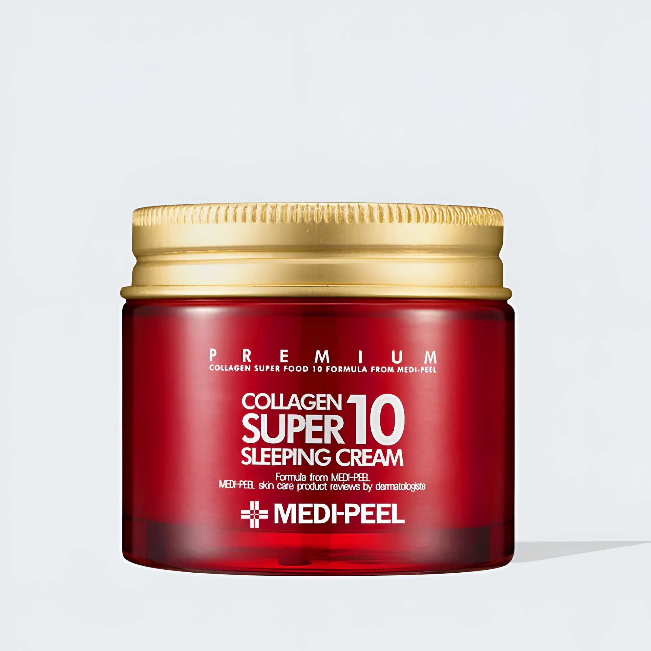 Medipeel Collagen Super 10 Sleeping Cream 70ml is an intensive overnight firming treatment powered by 10 multi-collagen complexes to lift, tighten, and deeply rejuvenate the skin.