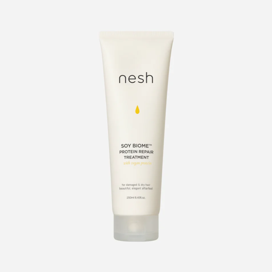 Nesh Soy Biome Protein Repair Treatment 250ml offers salon-quality care to repair and protect damaged hair. Soy protein and hydrolyzed keratin penetrate deeply into the hair shaft to rebuild structure, strengthen strands, and reduce breakage. The biotic complex supports overall hair and scalp health, while panthenol hydrates and softens. Argan oil provides long-lasting shine and frizz control, leaving hair silky and smooth. Lightweight and non-greasy, this treatment restores vitality and elasticity, making it ideal for dry, damaged, or chemically treated hair.