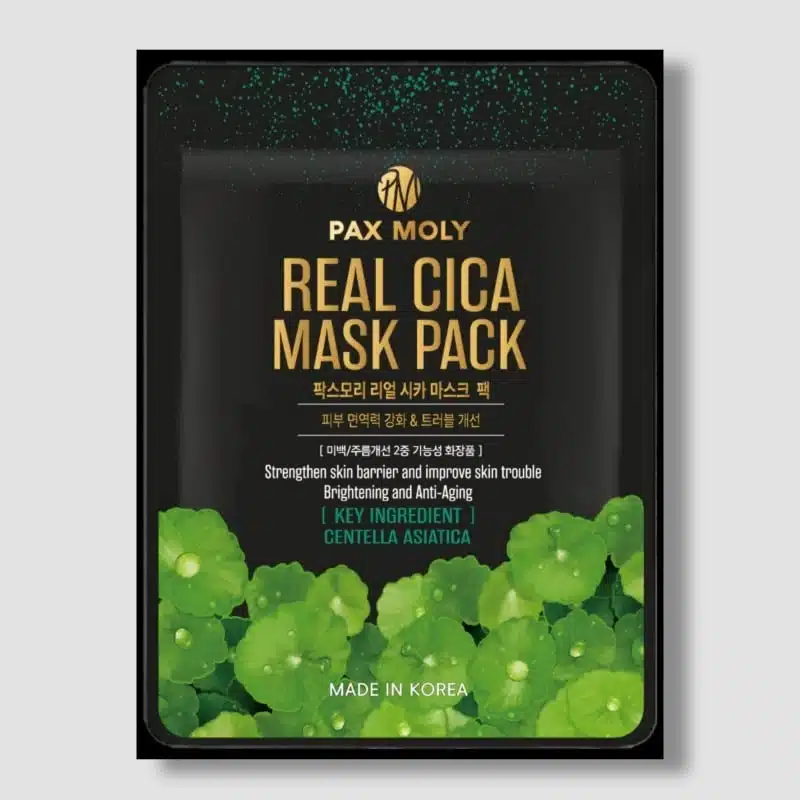 Pax Moly Cica Sheet Mask is formulated with Centella Asiatica (Cica), a well-known ingredient in Korean skincare for its powerful soothing and healing properties. It helps calm redness, irritation, and sensitivity while supporting skin barrier repair. The mask is infused with hydrating ingredients like glycerin and sodium hyaluronate, which provide deep moisture and prevent dryness. Additional soothing agents such as panthenol and allantoin help restore damaged skin and improve overall texture. This sheet mask is ideal for stressed, acne-prone, or sensitive skin, especially after sun exposure or environmental damage. Its soft sheet adheres well to the skin, allowing better absorption of essence for visible results in just 15–20 minutes.