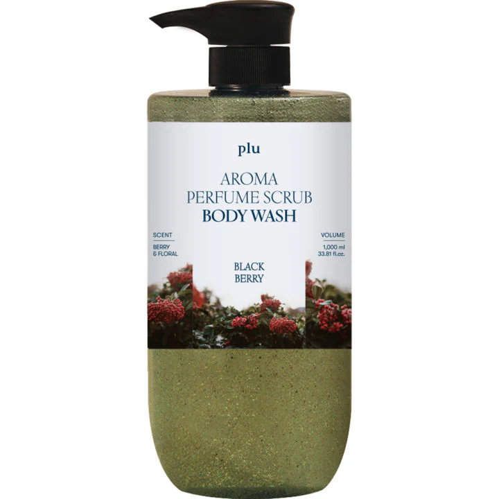 PLU Aroma Perfume Scrub Body Wash Black Berry is a 2-in-1 cleansing and exfoliating body wash enriched with walnut scrub and nourishing plant extracts. It gently removes impurities and roughness while hydrating and softening the skin. Infused with a juicy blackberry fragrance, it transforms your shower into a refreshing, aromatic experience.