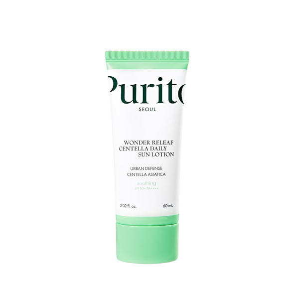 Purito Wonder Releaf Centella Daily Sun Lotion 60ml is a lightweight Korean sunscreen designed to provide strong sun protection while soothing and hydrating sensitive skin. With SPF 50+ PA++++ broad-spectrum protection, it helps shield the skin from harmful UVA and UVB rays that cause sun damage, pigmentation, and premature aging. This gentle sun lotion is formulated with over 30,000 ppm of Centella Asiatica extract, which helps calm redness, repair the skin barrier, and reduce irritation. Additional ingredients like niacinamide, panthenol, and hyaluronic acid help brighten the complexion and keep the skin hydrated throughout the day.