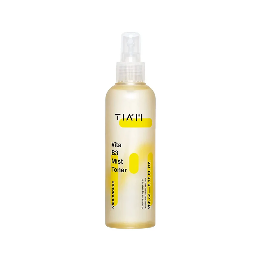 Tiam Vita B3 Mist Toner 200ml is a lightweight mist toner designed to refresh, hydrate, and brighten the skin while improving uneven skin tone. Infused with 3% niacinamide (Vitamin B3), tranexamic acid, and antioxidant‑rich extracts, this mist toner delivers soothing hydration and helps reduce the appearance of dullness and hyperpigmentation. The water‑based, non‑sticky formula absorbs quickly and can be used throughout the day for a boost of radiance and moisture. It can also be sprayed after cleansing or applied on cotton pads for deeper toning benefits.